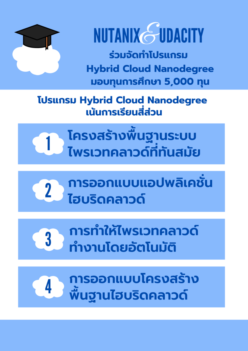 Technology Nutanix ร่วมมือกับ Udacity จัดทำโปรแกรม Hybrid Cloud Nanodegree เม.ย. 1, 2020 wepradmin มอบโอกาสทางการศึกษาจ…