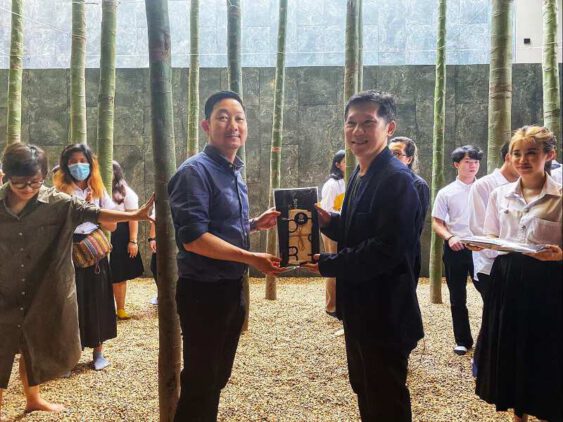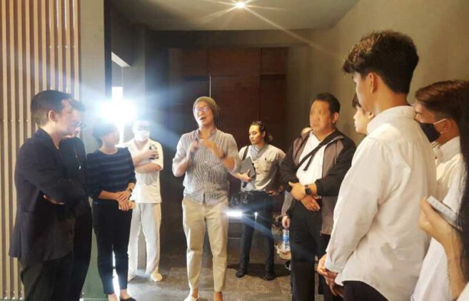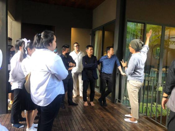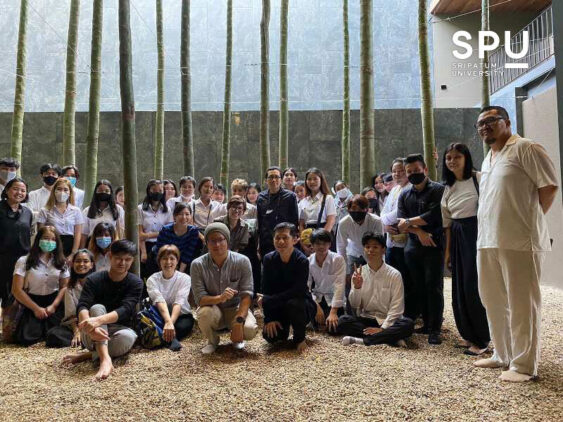 คณะสถาปัตยกรรมศาสตร์ มหาวิทยาลัยศรีปทุม โดย อาจารย์ธีรบูลย์ พิศาลอภิพงศ์ คณบดีคณะสถาปัตยกรรมศาสตร์ นำอาจารย์สาขาวิชาการออกแบบภายใน และสาขาวิชาสถาปัตยกรรมบางส่วน พร้อมด้วยนักศึกษาชั้นปีที่ 1-3 ที่เรียนดี มีผลงานดี และนักศึกษาที่สนใจ เรียนกับตัวจริง ประสบการณ์จริง ในการเข้าร่วมเรียนรู้และศึกษาดูงานโครงการบ้านราคา 45 ล้านบาท ที่ออกแบบมาเพื่อตอบโจทย์ลูกค้าระดับบน โดยได้รับเกียรติจากคุณ”หนึ่ง” ภานุพล ศิลแดนจันทร์ เจ้าของโครงการและผู้ออกแบบ ผู้ซึ่งไม่ใช่สถาปนิก แต่มีความสนใจในงานสถาปัตยกรรมและมีประสบการณ์สูงในการทำโครงการ เป็นผู้นำเยี่ยมชมบ้านพร้อมกับอธิบายแนวคิดในการทำงาน ตั้งแต่เรื่องของการตลาด กลุ่มเป้าหมาย งบประมาณ วิธีการก่อสร้าง การเลือกใช้วัสดุ และการออกแบบสถาปัตยกรรมภายนอก ภูมิสถาปัตย์ และการตกแต่งภายใน น้องๆนักศึกษาได้ทั้งความรู้และเกิดแรงบันดาลใจในการทำงานเป็นอย่างมาก