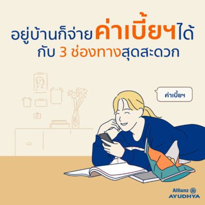 อลิอันซ์ อยุธยา เพิ่มความสะดวกให้ลูกค้า อยู่ที่ไหนก็ชำระค่าเบี้ยได้ ไม่ต้องออกจากบ้าน ผ่าน 3 ช่องทางสุดสะดวก